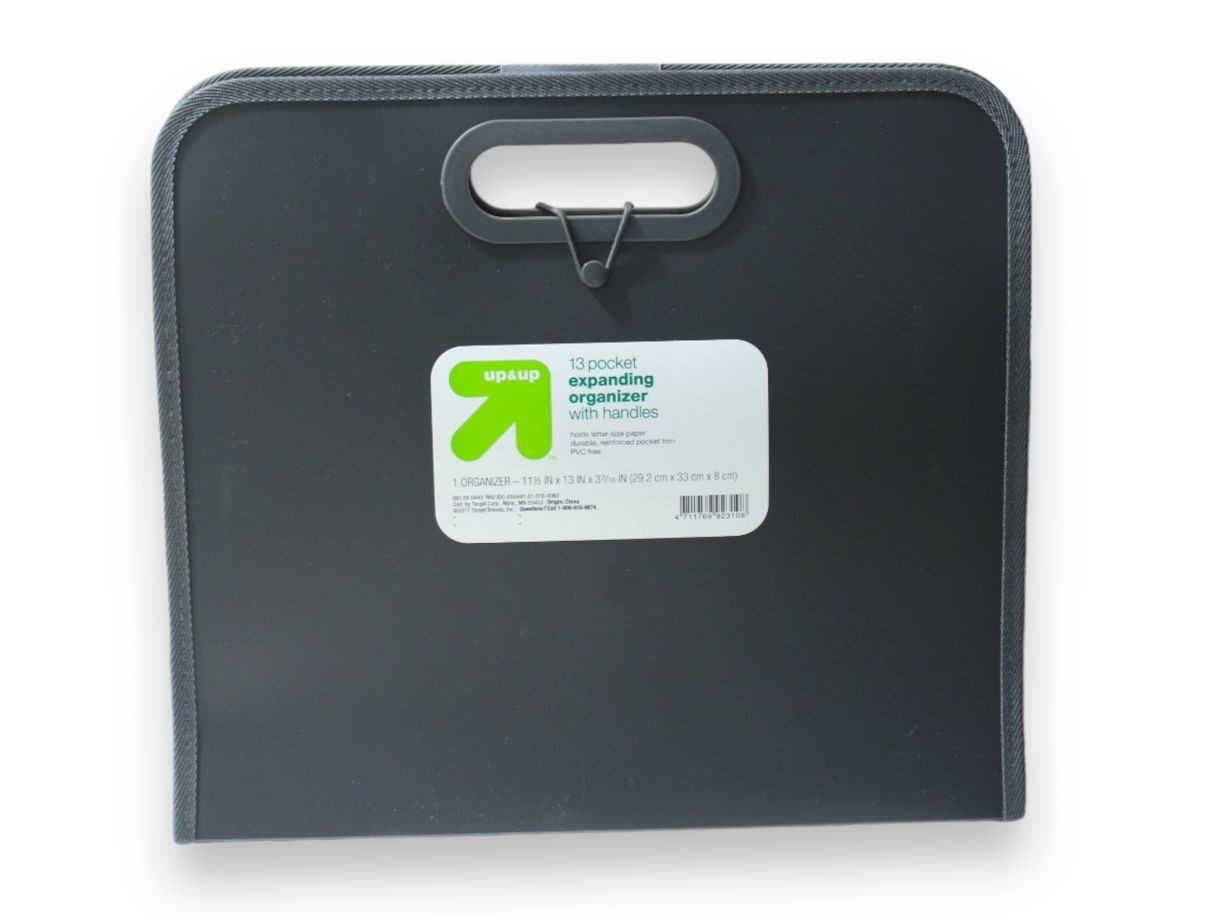 Keep your documents protected and organized with this File Folder Expanding Organizer from up & up™. This 13-pocket file organizer features an expanding pocket design, complete with colorful tab inserts to help you quickly locate what you need. Whether carried along while traveling, kept at home or in your desk drawer, you can use this horizontal file organizer to keep up to 100 letter-size papers with ease. Thanks to its portable design and flap cover, your documents will always stay protected.
