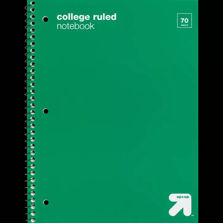 Make note-taking easy and organized with the College-Ruled 1-Subject Hard Cover Spiral Notebook from up & up™. This one-subject notebook includes 70 college-ruled sheets for efficient space utilization, while the perforated design allows easy and neat tearing of pages. Featuring a Hard cover with spiral wire binding that makes it easy to flip through pages, this spiral notebook has three punched holes at the edges for placing inside a binder for convenient storage.
