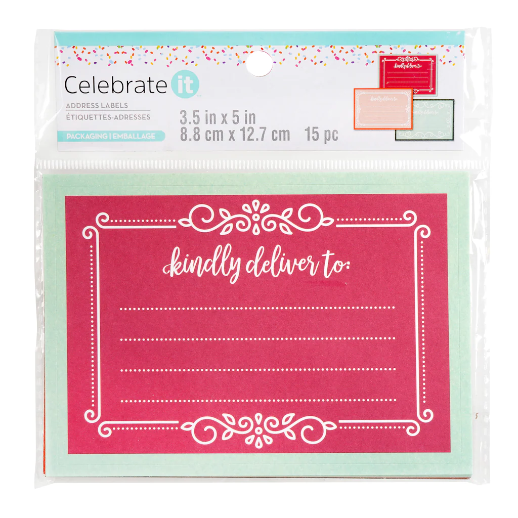 Make your delivery packaging extra special with this set of bright address labels. They feature decorative borders and are perfect for birthdays, weddings, and other special occasions.
