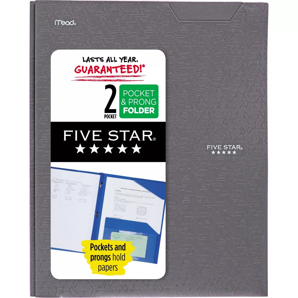 Papers can sometimes fall out of folders, but not anymore! Perfect for holding class assignments and other loose sheets, tabs on the inside corners of the folder capture the top of your papers so they “stay put.” A reinforced spine also helps keep papers in place. Plastic construction ensures the folder stands up to daily use. Three-hole punched to store in your favorite Five Star binder. Measures 9 1/2″ x 11 3/4″ and holds standard letter size sheets.