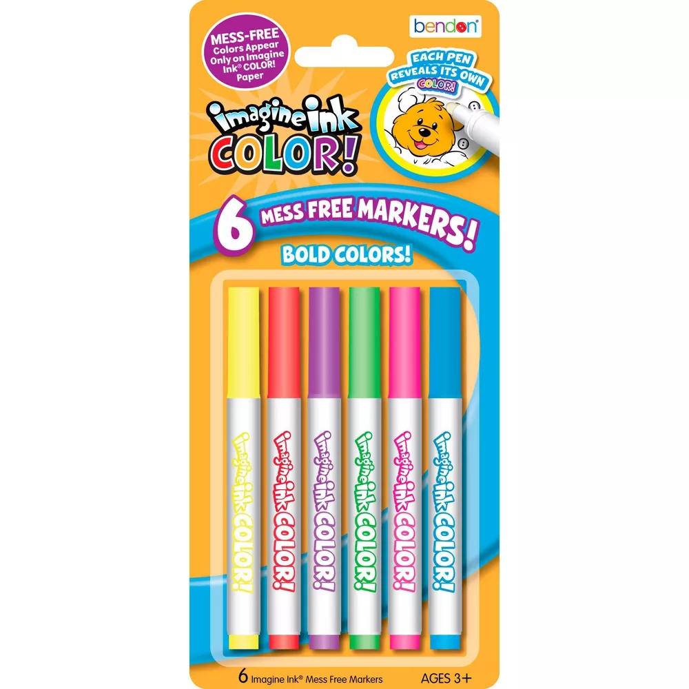 - Includes 6 Imagine Ink® COLOR! Mess-Free markers