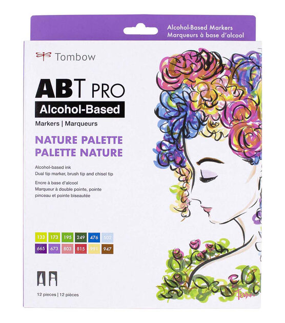 ABT PRO is a permanent dual tipped art marker with flexible brush tip and chisel tip in one. “Nature” color 12 pcs assortment, including re-useable and stackable desk tray. Brush tip works like a paintbrush to create fine, medium or bold strokes by simply changing brush pressure; chisel tip provides consistent lines and broad coverage for coloring large spaces. Slender barrel for comfortable grip during use. Ideal for artists, designers and crafters. Permanent, fast-drying alcohol-based ink produces rich, vibrant colors that can be layered to create rich saturation, shading and color gradation. Durable nylon brush tip and polyester chisel tip retain shape after heavy use. Also available, Blender Pen with colorless blending ink is great for smoothing out color fields, creating gradations and manipulating or correcting color applications. Colors Included: P133 Chartreuse, P173 Willow Green, P195 Light Green, P249 Hunter Green, P476 Cyan, P502 Arctic Blue, P665 Purple, P673 Orchid, P803 Pink Punch, P815 Cherry, P991 Light Ochre, P947 Burnt Sienna