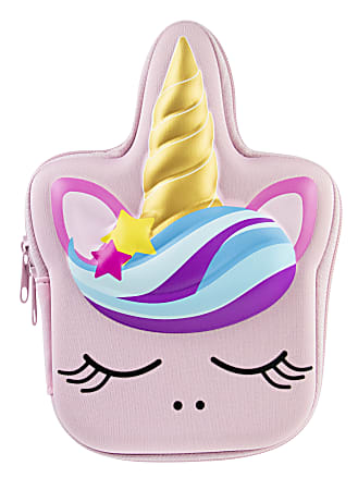 - Plastic soft-sided pencil box with zippers secures writing instruments.