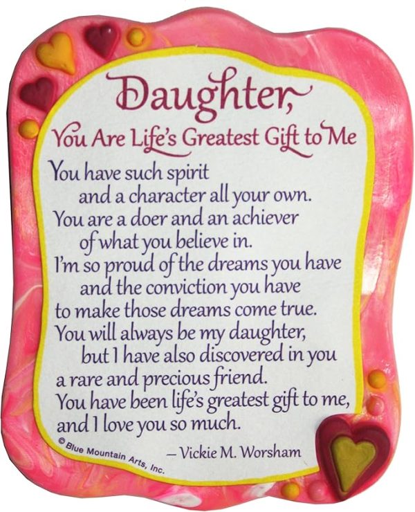 - Blue Mountain Arts Sculpted Resin Magnet, Daughter You are Life’s Greatest Gift to Me by Vickie M. Worsham; magnet measures 2-7/8 x 3-3/4 inches