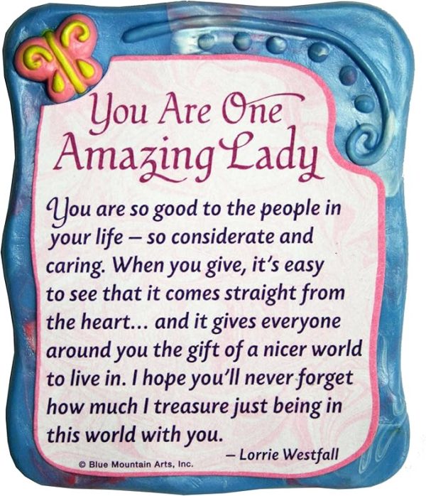- Blue Mountain Arts Sculpted Resin Magnet, You Are One Amazing Lady by Lorrie Westfall; magnet measures 2-7/8 x 3-3/4 inches