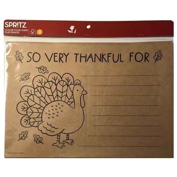 Spritz 10 pack Placemats “So Very Thankful For” Color Your Own Turkey